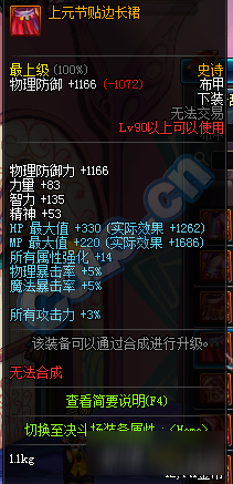 答:NO.2 皮甲-织梦龙鳞腰带:物理魔法攻击力+132,独立+152,黄字伤害+10 皮甲 皮甲腰带有较高三攻的加成,可以当做穿在腰上的左曹使用。即便是10%黄字被冲突掉了,这件装备光看三攻的提升也是很不错的。如果能保证黄字不。